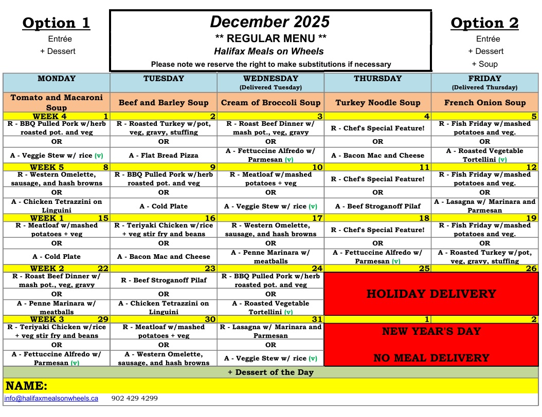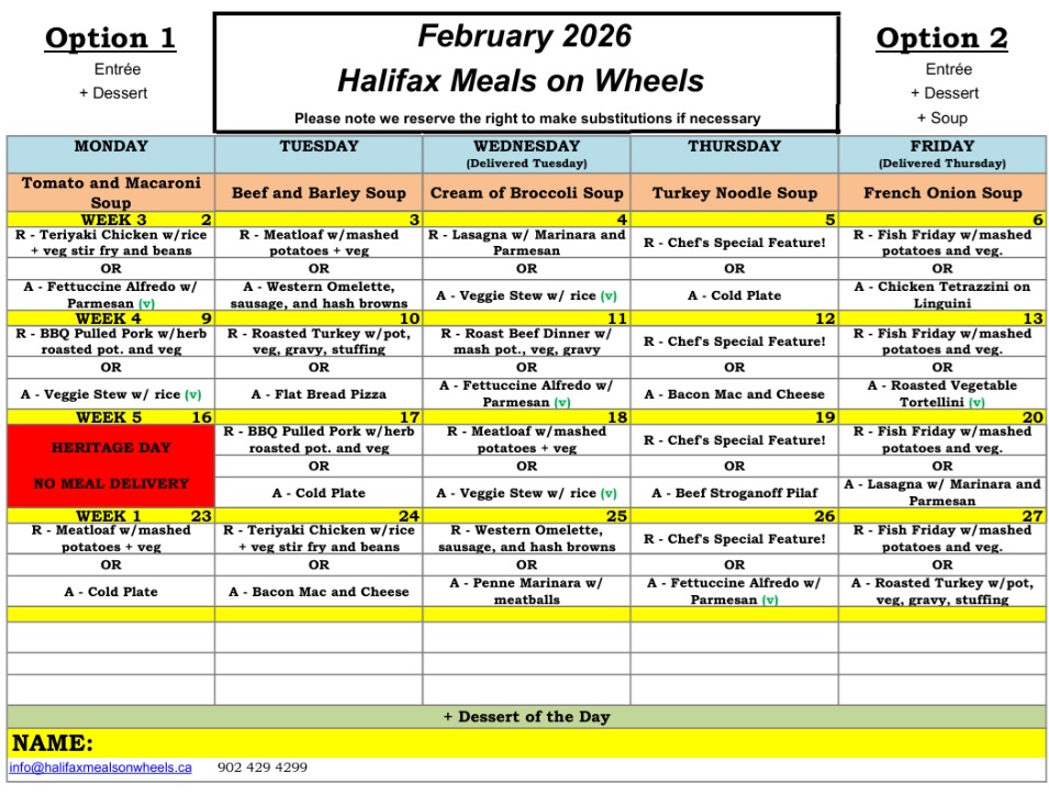 902-465-5578 ext. 216 - Bedford Sackville Meals on Wheels: